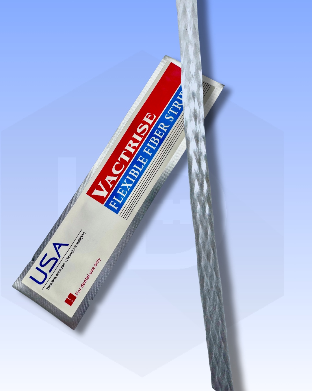 Fibra de refuerzo trenzada maleable y usada en ferulización de dientes, prótesis de provisionales directas y refuerzo en restaiuraciones. Sobre por unidad tira por 12.5 cms y 3.5 mm.