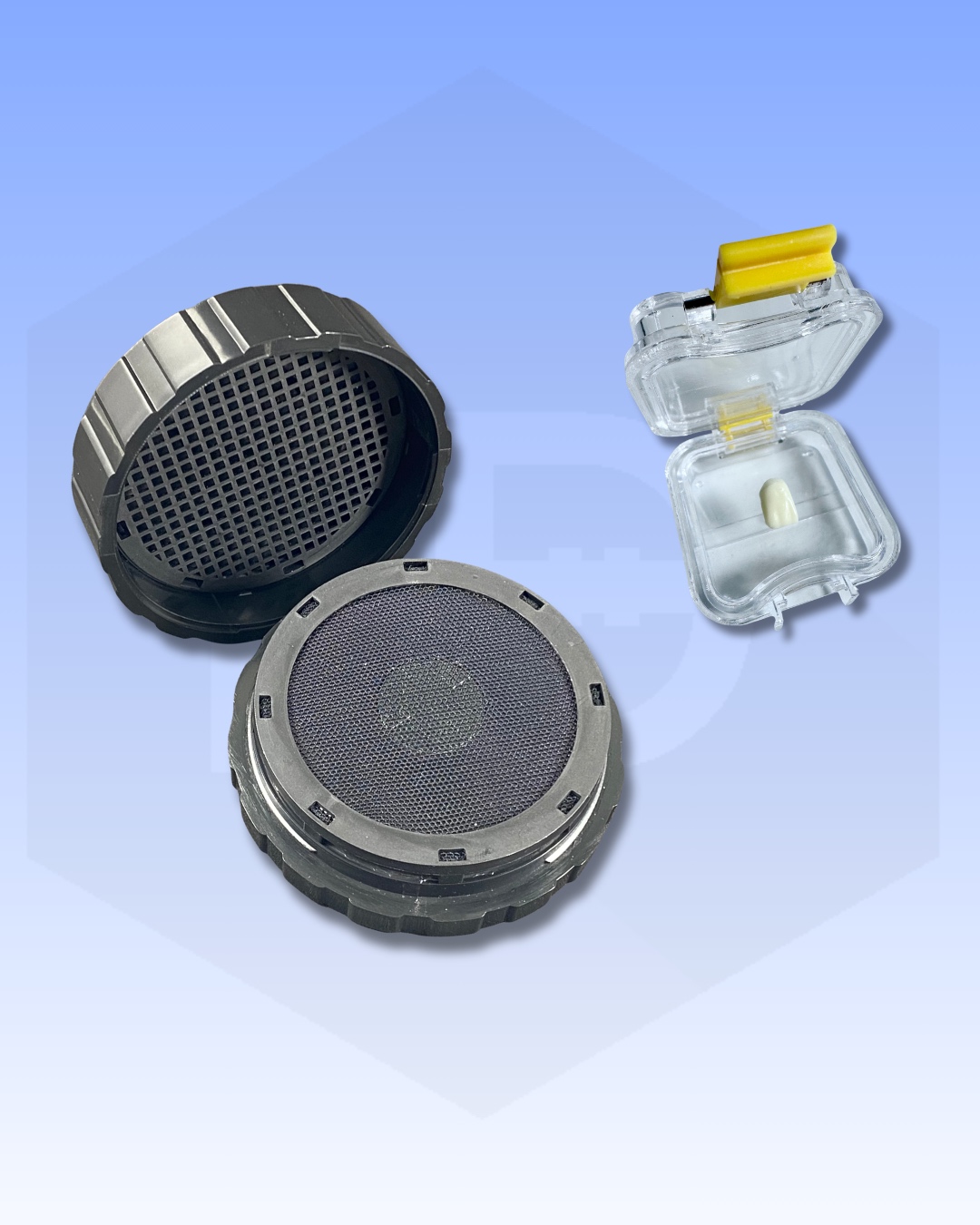 Caja protectora con disco recubierto de en gel de poliuretano. Facilita en trabajo con acido, silano, sin preocuparse por caídas, se puede apoyar por vestibular. Incluye accesorio transportador.